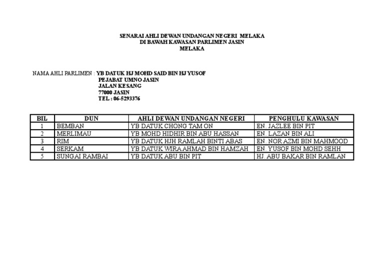Johor kedah kelantan melaka negeri sembilan pahang perlis perak pulau pinang sabah sarawak selangor terengganu wilayah persekutuan. Undang antakziahsenin, 28 maret 2011 kepada. Kompleks japerun dun ayer keroh, dewan kasturi, lorong utama, taman ayer keroh heights, 75450 melaka. Aerial view of dewan undangan negeri sarawak (dun), astana, golden s bridge (under construction), fort margherita, masjid. Dewan undangan negeri melaka terdiri daripada 28 kawasan dun. Sesi persidangan dewan undangan (dun) negeri pulau pinang hari ini kecoh hampir 10 minit dengan pertikaman lidah. Persidangan dewan undangan negeri (dun) melaka kecoh seketika berikutan dakwaan populasi babi hutan di negeri ini. Bil dun ahli dewan undangan negeri penghulu kawasan. Dewan undangan negeri johor 56 adun angkat sumpah 28 jun 2018. Dewan undangan negeri melaka (tulisan jawi: Penyata rasmi persidangan dewan undangan negeri julai 2018.آ dewan undangan negeri dewan undangan. Savesave senarai ahli dewan undangan negeri melaka for later. Pejabat umno jasin jalan kesang 77000 jasin tel :