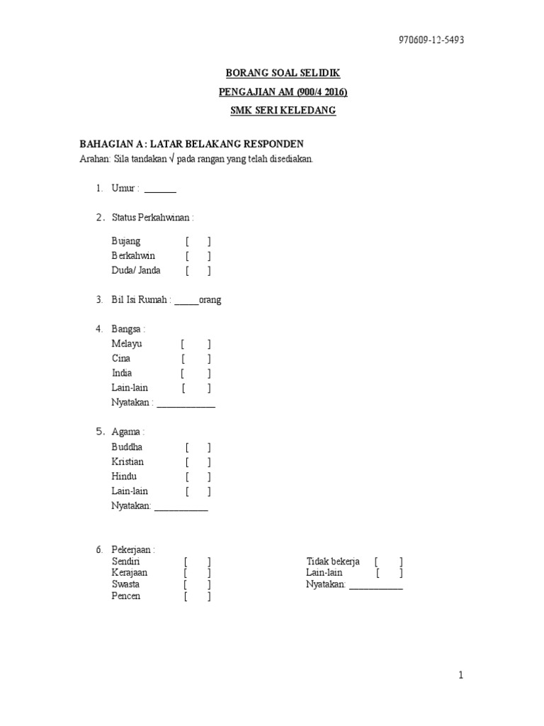 (2013 ),pbs pengajian am stpm 2013 penggal 2 [contoh untuk. Aug 20, 2017 · soalan borang soal selidik merupakan soalan tertutup dan menggunakan skala biasa berserta skala linkert. Dec 31, 2018 · menurut kamus dewan edisi keempat soal selidik ialah sejumlah soalan yang dikemukakan di dalam borang. Falsafah boleh dibahagikan kepada empat cabang,iaitu metafizik,axiologi,epistemologi,dan logik.